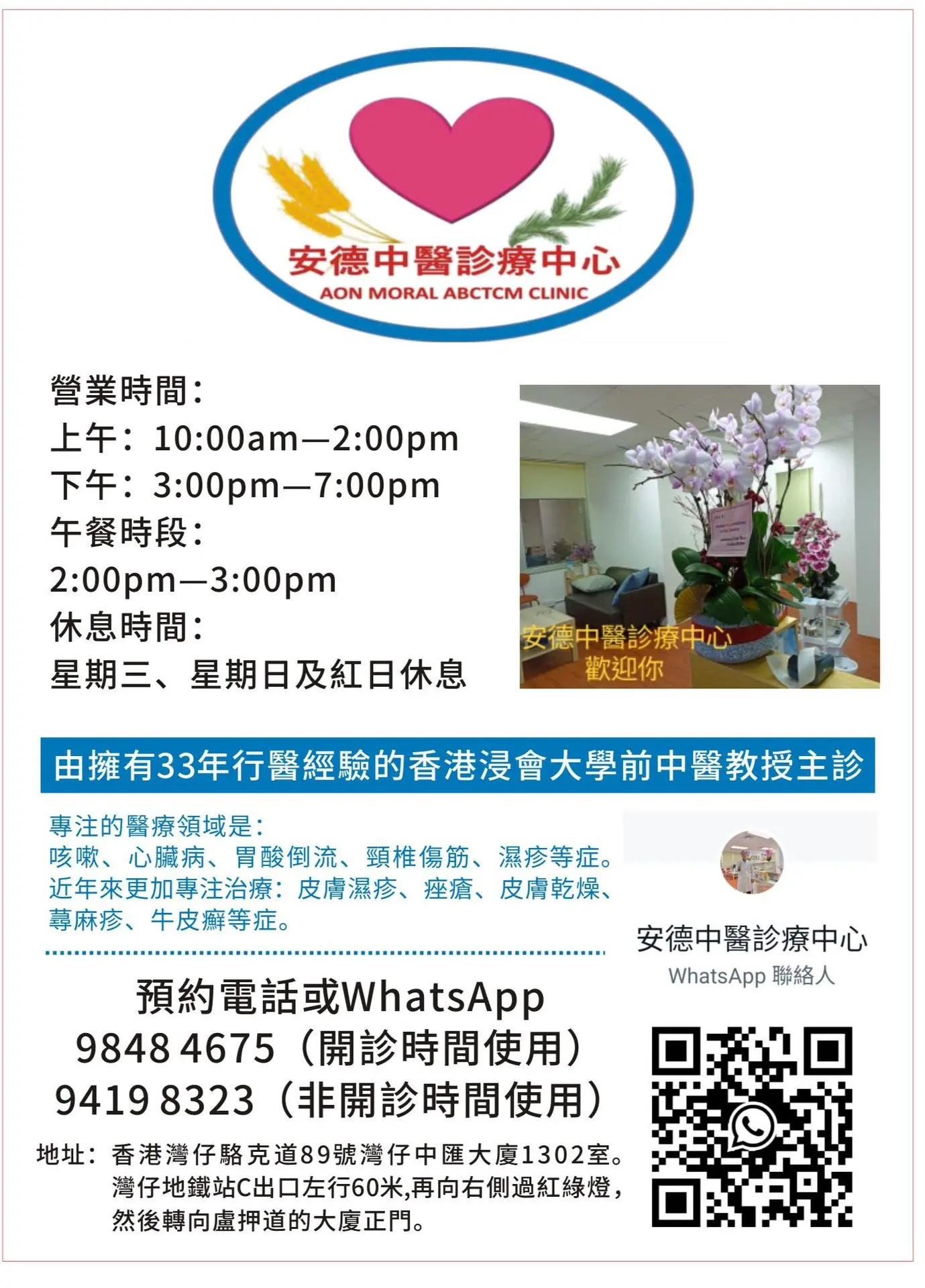 專業調理虛寒和虛寒夾熱體質。治療冠心病,胃酸倒流,咳嗽,氣管炎哮喘,頸椎病,近年更加專注於治療皮膚濕疹,蕁麻疹,乾癬,銀屑病。